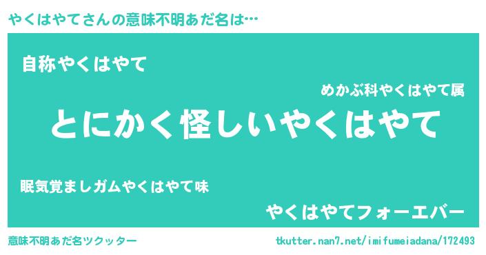 | ヒーロー風カッコイイあだ名 | 『天弓騎士ヤク』『愛の使者やくはやて』 |