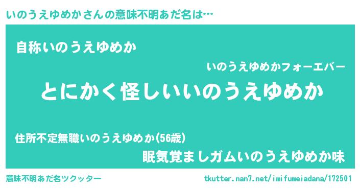 | 女子向けラノベタイトル風あだ名 | 『いのうえゆめか様がみてる』 |