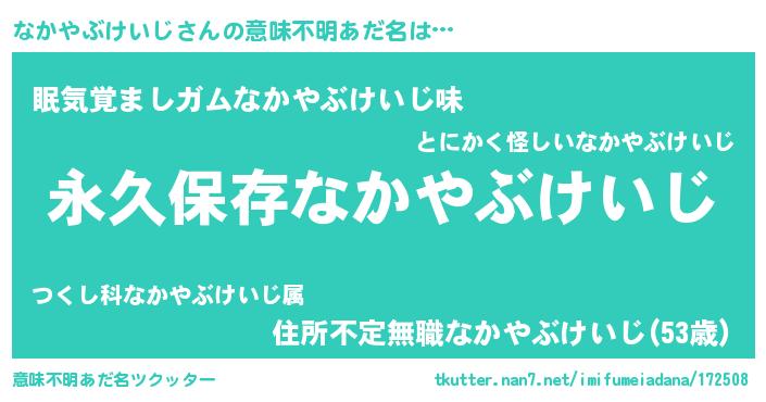 | ヘコむあだ名 | 『なかやぶけいじ(震え声)』『なかっ子』 |