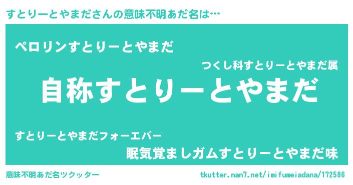 | 男性向けラノベタイトル風あだ名 | 『うちのすとりーとやまだが世界を掌握している!』 |