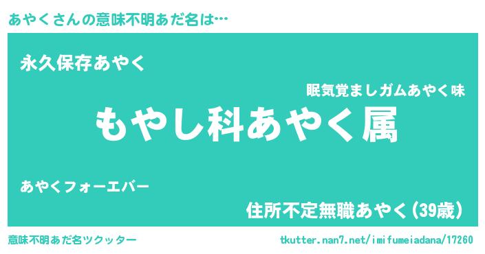 | ヘコむあだ名 | 『あやく(笑)』『レバニラ』 |