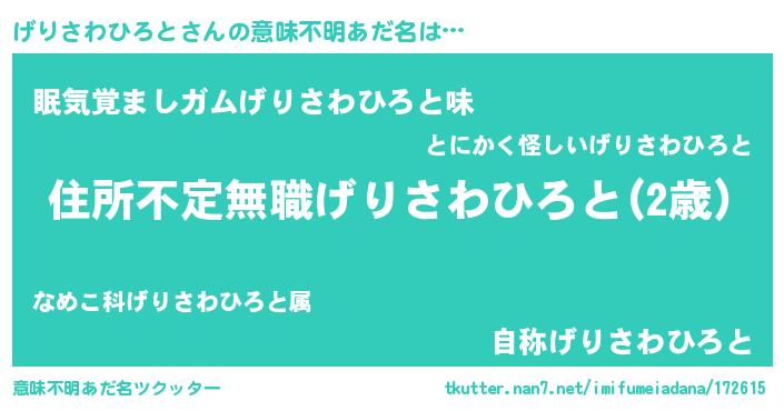 | 欧米人風あだ名 | 『げりさわひろと・ステッグマイヤー』 |