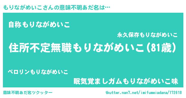 | 欧米人風あだ名 | 『ダレノガレもりながめいこ』 |