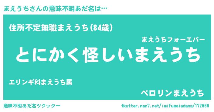 | 欧米人風あだ名 | 『ウサインまえうち』『マイケルまえうち』 |