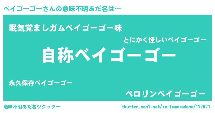 | 男性向けラノベタイトル風あだ名 | 『はたらくベイゴーゴーさま!』 |