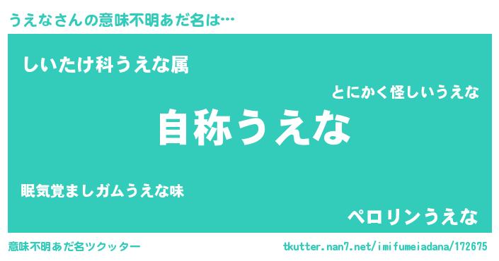 | 男性向けラノベタイトル風あだ名 | 『Re:うえなから始める異世界生活』 |