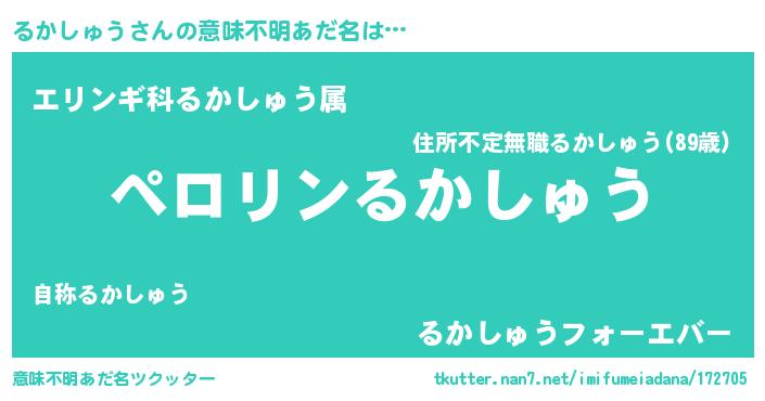 | 胡散臭い通販商品みたいなあだ名 | 『億万長者になれる霊験あらたかなお札…その名も「るかしゅう」』 |