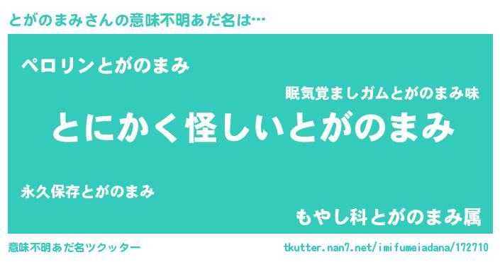 | ポケモン風あだ名 | 『トガゴンZ』『ヒトガノマミ』 |