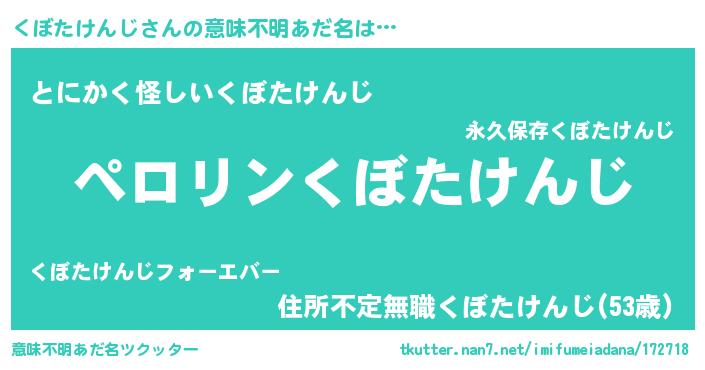 | 欧米人風あだ名 | 『くぼたけんじ・ステッグマイヤー』 |