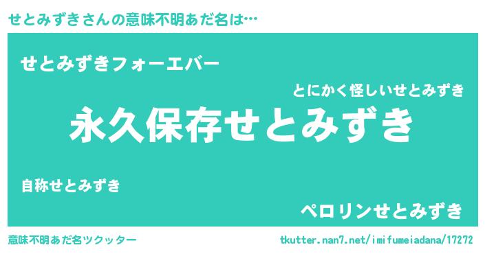 | ヘコむあだ名 | 『せとみずき(爆)』『つくし』 |