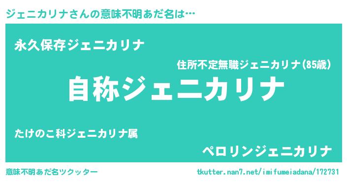 | 欧米人風あだ名 | 『ケンブリッジジェニカリナ』 |