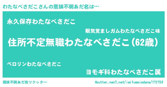 | 欧米人風あだ名 | 『ダレノガレわたなべさだこ』 |