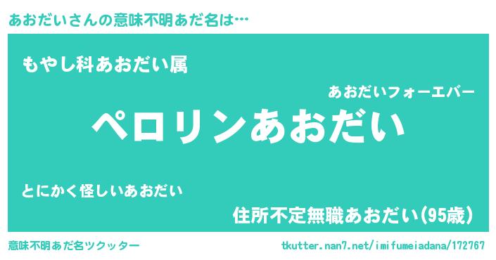 | 欧米人風あだ名 | 『アンジェラ・あおだい』 |