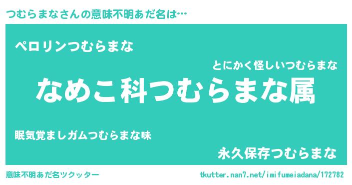 | 男性向けラノベタイトル風あだ名 | 『転生したらつむらまなだった件』 |