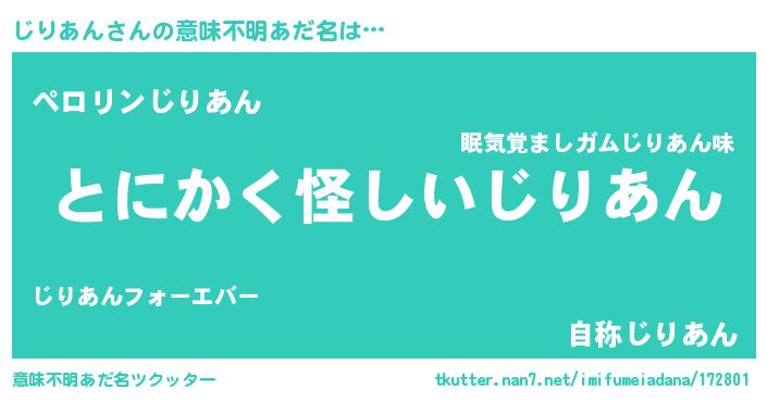 | 欧米人風あだ名 | 『ウサインじりあん』『マイケルじりあん』 |