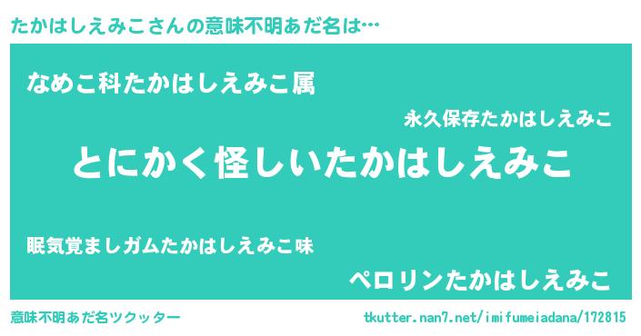 | 胡散臭い通販商品みたいなあだ名 | 『全米が絶賛したサプリメント…その名も「たかはしえみこ」』 |