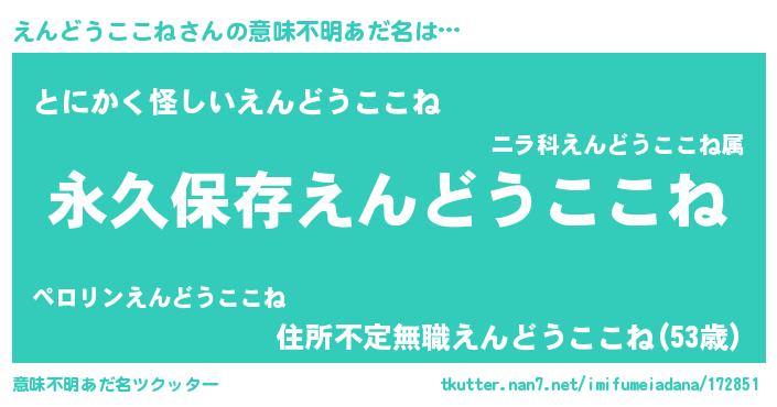 | ヘコむあだ名 | 『えんどうここね(爆)』『えんを』 |