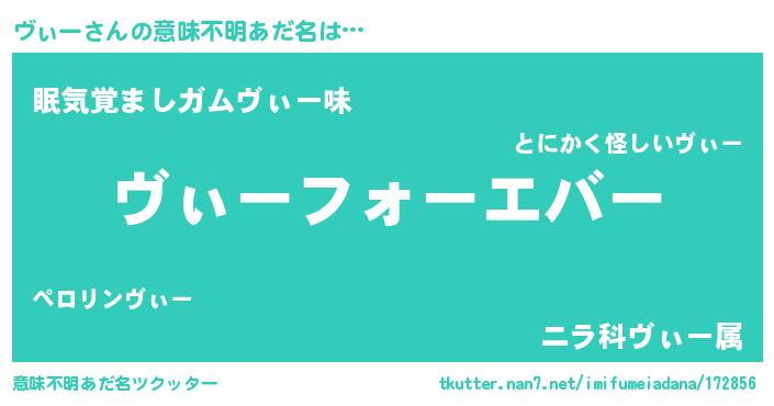 | 自動車の名前っぽいあだ名 | 『ヴクア』『フィッヴ』『ヴント』 |