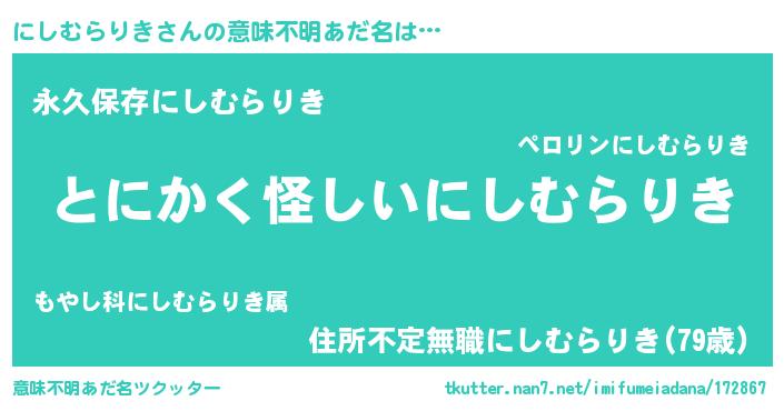 | 胡散臭い通販商品みたいなあだ名 | 『信頼と実績のネックレス…その名も「にしむらりき」』 |