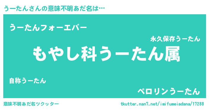| 男性向けラノベタイトル風あだ名 | 『転生したらうーたんだった件』 |