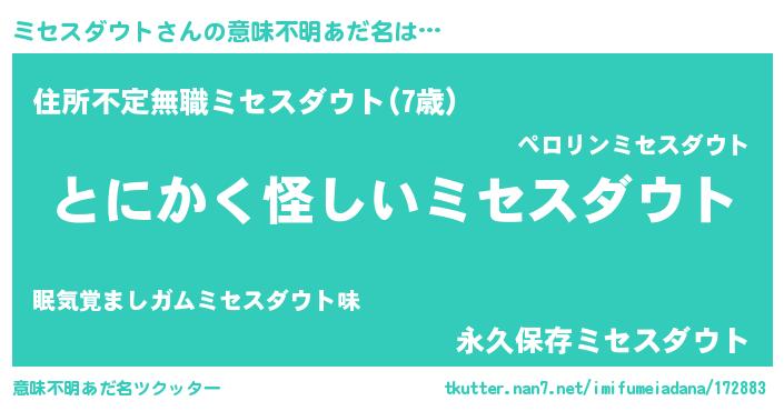 | ヘコむあだ名 | 『ミセっちょ』『ミセスダウト(笑)』 |