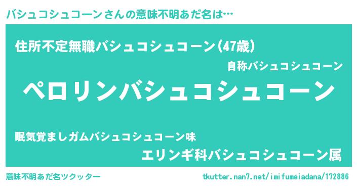 | 男性向けラノベタイトル風あだ名 | 『バシュコシュコーンの憂鬱』 |