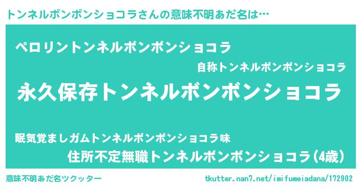 | 可愛いあだ名 | 『トンネルボンボンショコラママ』 |