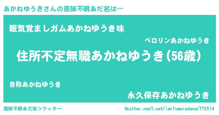 | ヘコむあだ名 | 『あかねゆうき(爆)』『あかにー』 |