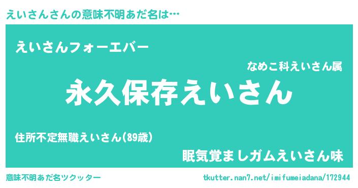 | 胡散臭い通販商品みたいなあだ名 | 『来世でも幸せになれる健康食品…その名も「えいさん」』 |