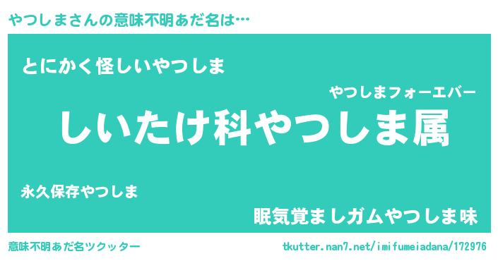 | 男性向けラノベタイトル風あだ名 | 『ヤツシマスレイヤー』 |