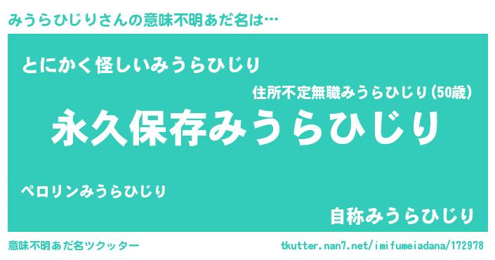 | ポケモン風あだ名 | 『ゼニミウ』『ヒミウラヒジリ』 |