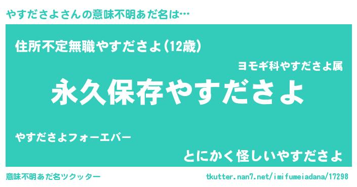 | 胡散臭い通販商品みたいなあだ名 | 『絶対に幸福をもたらす健康食品…その名も「やすださよ」』 |