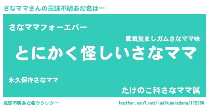 | ヒーロー風カッコイイあだ名 | 『銀牙騎士サナ』『ウルトラさなマママン』 |