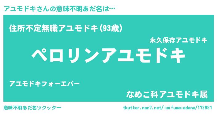 | ヒーロー風カッコイイあだ名 | 『スーパーアユモドキ』『仮面アユダー』 |