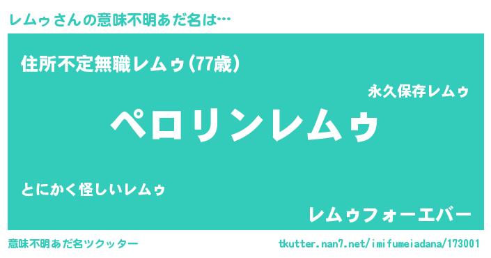 | ヘコむあだ名 | 『レムにゅー』『つくし』 |