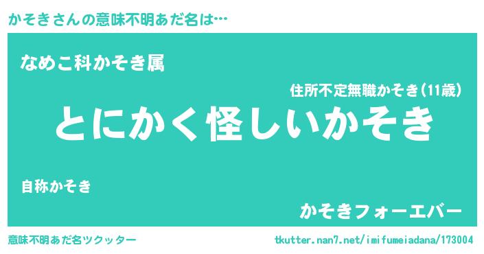| 胡散臭い通販商品みたいなあだ名 | 『信頼と実績のサプリメント…その名も「かそき」』 |