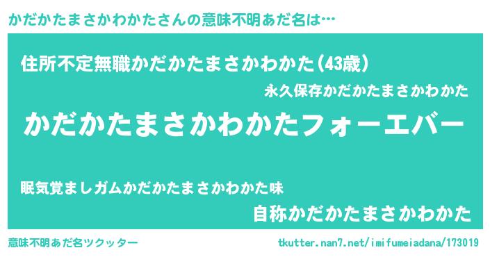 | ファンタジー風あだ名 | 『エターナルカダカタマサカワカター』 |