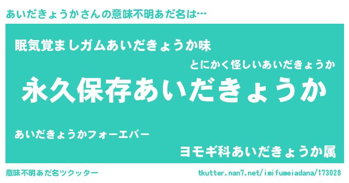 | 胡散臭い通販商品みたいなあだ名 | 『絶対に幸福をもたらす健康食品…その名も「あいだきょうか」』 |