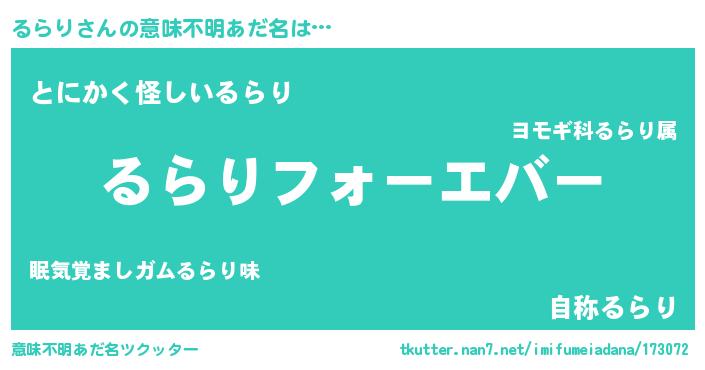 | ヘコむあだ名 | 『豆乳』『るらを』『るらり(笑)』 |