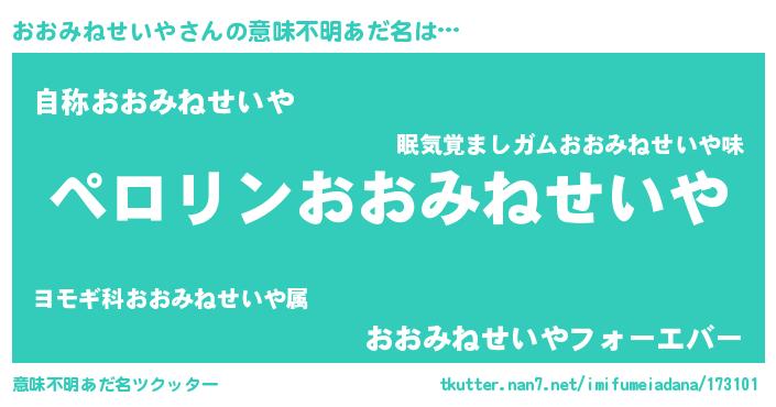 | 胡散臭い通販商品みたいなあだ名 | 『億万長者になれる霊験あらたかなお札…その名も「おおみねせいや」』 |