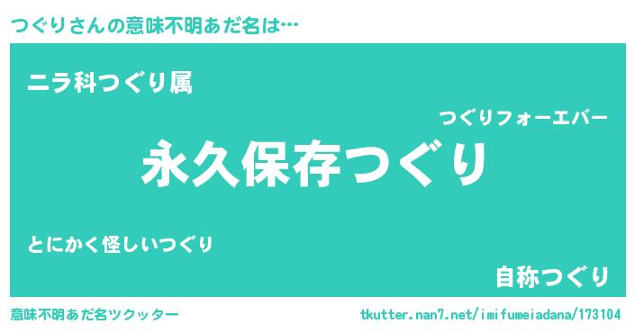 | 男性向けラノベタイトル風あだ名 | 『つぐりという概念が存在しない退屈な世界 』 |