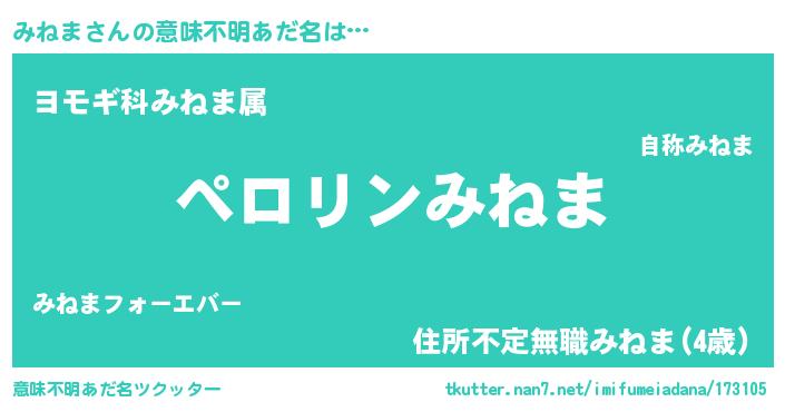 | 自動車の名前っぽいあだ名 | 『ミネティマ』『ミールスネイス』 |
