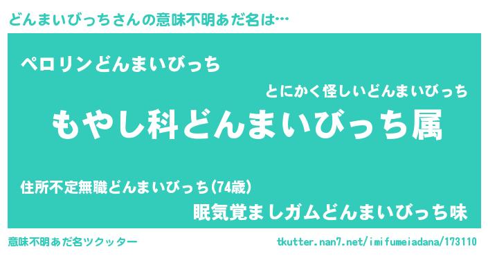 | 男性向けラノベタイトル風あだ名 | 『どんまいびっちに滅ぼされるだけの簡単なお仕事です』 |