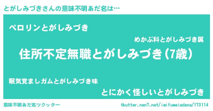 | 料理風あだ名 | 『とがしみづきのカルパッチョ風』 |