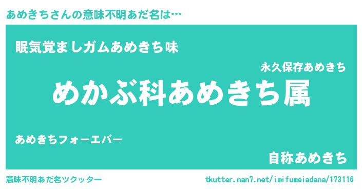 | 男性向けラノベタイトル風あだ名 | 『アメキチスレイヤー』 |