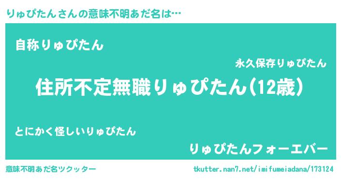 | 欧米人風あだ名 | 『りゅぴたん・ステッグマイヤー』 |