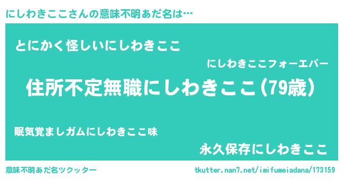 | ポケモン風あだ名 | 『ニーシイ』『ヒニシワキココ』 |