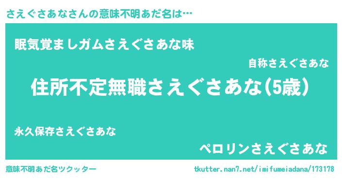 | 欧米人風あだ名 | 『アンジェラ・さえぐさあな』 |