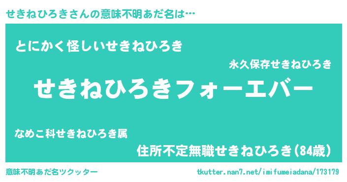 | ポケモン風あだ名 | 『セキネダネ』『ヒセキネヒロキ』 |