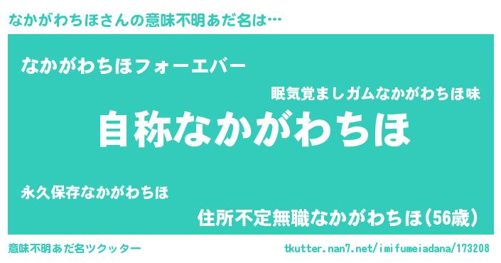 | 男性向けラノベタイトル風あだ名 | 『Re:なかがわちほから始める異世界生活』 |